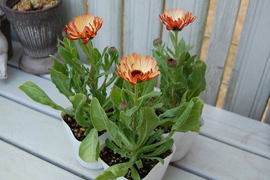 花びらの裏表の綺麗なアンティーク色のキンセンカ