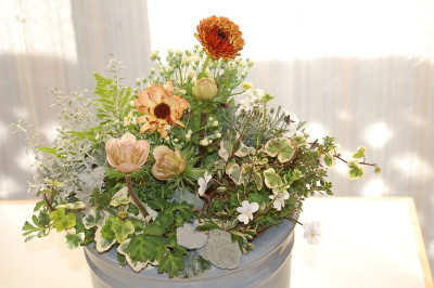 アネモネクラシカルピンクとカレンデュラコーヒークリームのブリコラージュフラワー