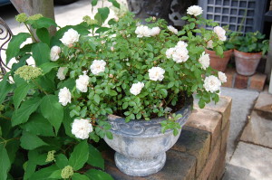 国際バラとガーデニングショーから帰ってきたハンキングが庭に加わり(^ ^)ホワイトガーデンが引き立ちます♪