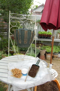 プチバスケット・培養土・オルトランとマグアンプ・水苔