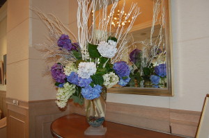 棚に飾られた切花や壁に飾られたお母様の絵画!