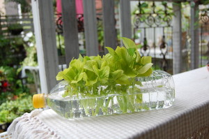 カットした枝は、水に挿してお教室までに発根すると良いな~