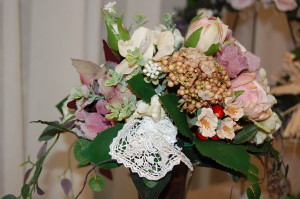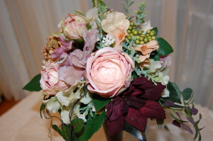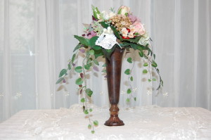 ちょっと渋めの背の高い花器にアートフラワーでアレンジしてみました(^ ^)