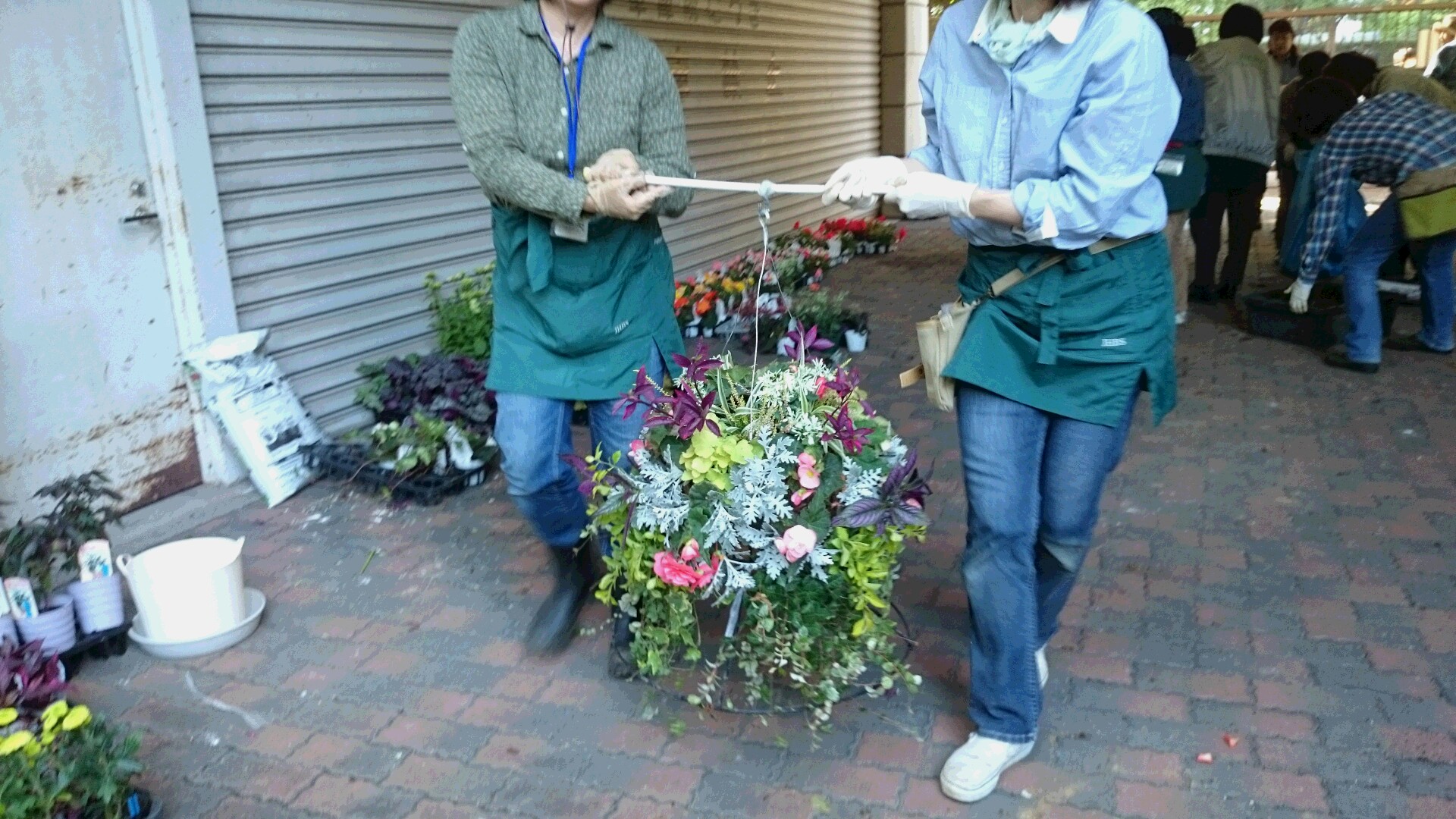 公認講師の先生方に教えて頂きながら一日かけて、吊り型16基とスリットバスケット38基?コンテナ20基?を作成(^O^)