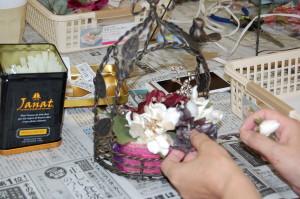 終わる頃、時間をずらしご自宅から持ってきたアイアン籠のアレンジもお二人参加(^ ^)
