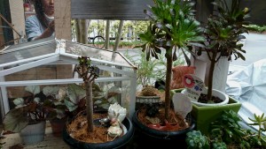 寒くなったので、風の当たらないパーゴラの下の多肉たち。