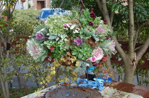 二つの先品には、チュウリップの球根もいれて、春にはトップにピンクのアンジェリカの花が咲きます(^-^)