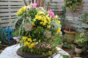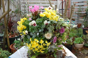 昨日はご注文頂いたラウンドバスケットの植え込みをしました。