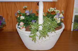 今回は隠し球根を入れて、春には花かごに沢山のお花をイメージ♪