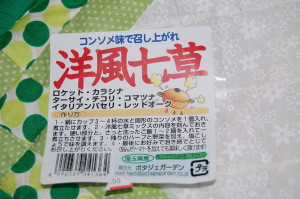 ロケット・カラシナ・ターサイ・チコリ・小松菜・イタリアンパセリ・レッドオーク。