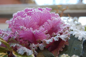 庭に出ると、葉牡丹がキラキラと輝き(^O^)思わずカメラを向けました♪