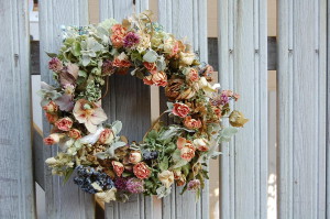 アプリコット系のドライフラワーリースを先日作りました(^-^)