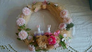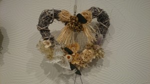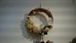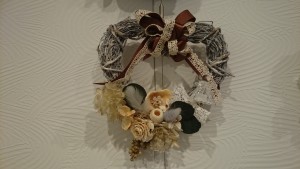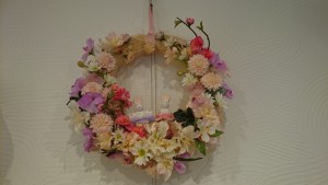 丸いリースを持参され、花材を増やして見事な仕上がりです✽(*゚∀゚*)✽