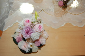 毛糸で編んだお花のモチーフも添えて~