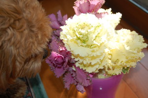 切った葉牡丹は、花瓶にさして~
