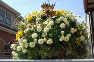 ラウンドバスケットのマーガレットが満開です(^O^)