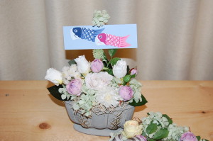 鯉のぼりで可愛らしくリースやアレンジも良いかな?と思って作ってみました(^_^)