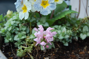 昨年、植えっぱなしのジュリアンとラミュームの花が咲いてました♪