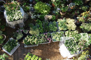 一度、レッスン用の苗を庭に出し、水のチェックと花柄摘み・風と日光に当てます♪