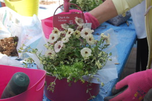 ご自身の寄せ植えに飾って、集合写真!