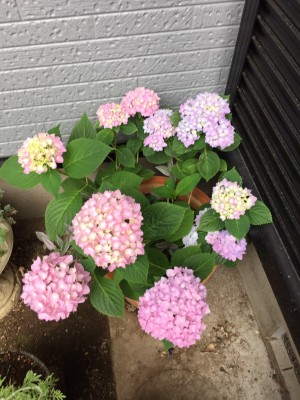 ブルーとピンクの2色になった紫陽花で元気に咲いていました(^ ^)