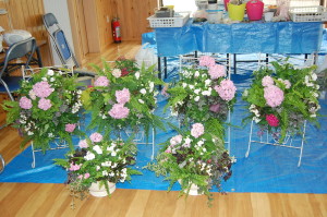 25日の集会棟ではペンタスの色を選んで頂き、紫陽花のポジションもそれぞれ違いますが、どれも素敵です(^ ^)