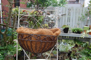 器は、かなり傷んだアイアン製のbasketにヤシを敷き詰めて、ギャザリングで(^ ^)