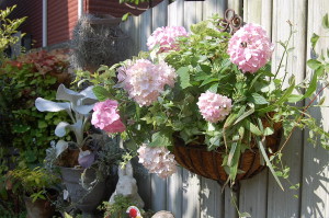 ✩紫陽花「霧島の恵み」のハンキング&寄せ植え