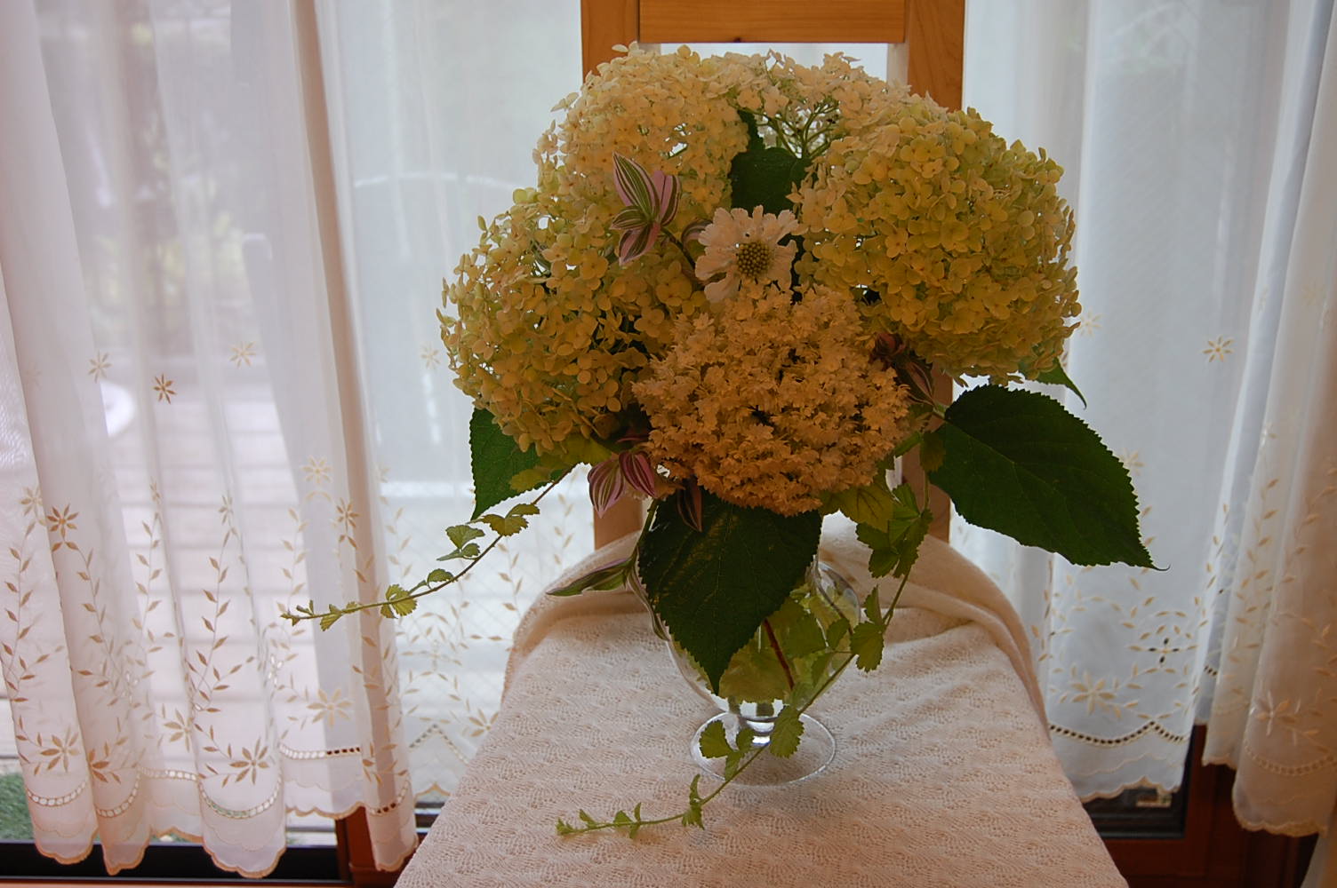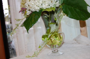 アジサイは、花が重たいので(^ ^)花瓶にアレンジするのが難しいのですが~