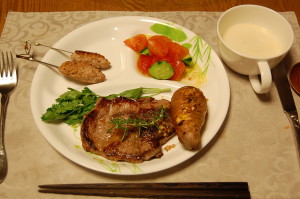我が家の食欲旺盛男性には、ポークステーキをメインに(^ ^)