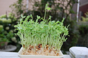 昨日は梅雨空だったので、1日デッキに置いてみた豆苗ちゃん♪