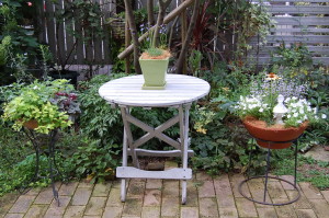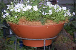今回はシンプルな浅めの大きなテラコッタ(Jマートで購入)をスタンドに乗せて~