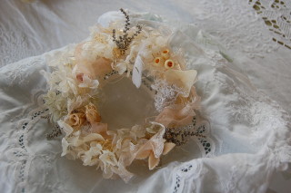 プリザーブドフラワーとアートフラワーのミニ・ホワイト・リース♪