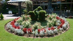 日比谷門(第二花壇沿園路)に赤いハンキングが飾られます(^ ^)