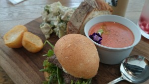 食用トレニアのお花の飾ったトマト冷製スープの美味しいこと~(^ ^)
