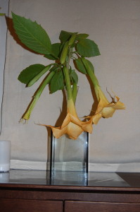 帰宅後、ご近所の方からエンジェルトランペットのお花を頂きました(^ ^)