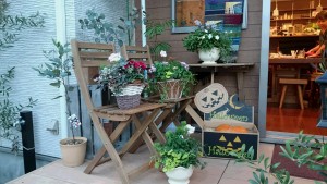 テラスにギャザリングの寄せ植えを置かせて頂き、かなりお安くして、販売♪