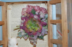 ②のブルーフレームは、リスのキャンドルをお付けしたアート多肉のアレンジ♪