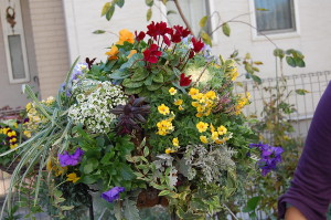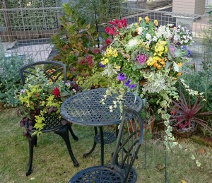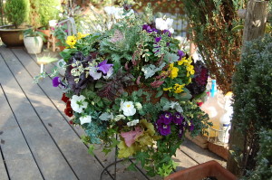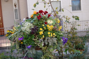お庭には、日頃ガーデニングを楽しんでいらっしゃるので、既に色々な冬花の寄せ植えが並んでます。