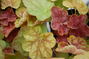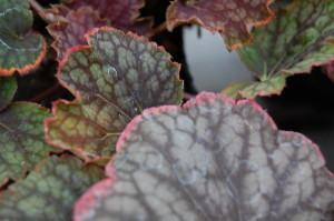 葉のフチが真っ赤に紅葉しているヒューケラ