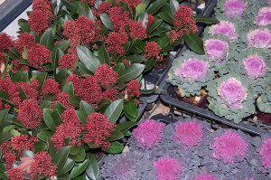 さあ~こちらは、12月のハンキングレッスンで使用する葉牡丹は、スキミアとバッチリ合ってます(^ ^)