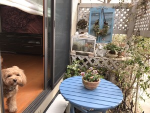 デッキとテーブルのペイントが済み、綺麗になると庭に出ることが増えました(^ ^)