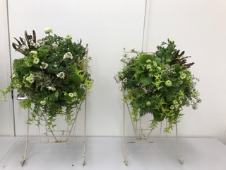 白花ラナンキュラスの花が開くとエレガントなハンキングになりそうで楽しみです(^O^)