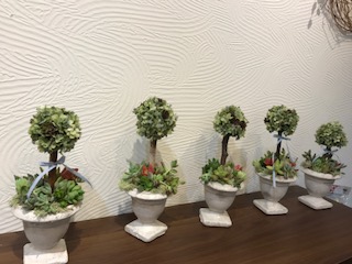 アートフラワーでトピアリーを作り、足元に多肉植物をアレンジする(^ ^)