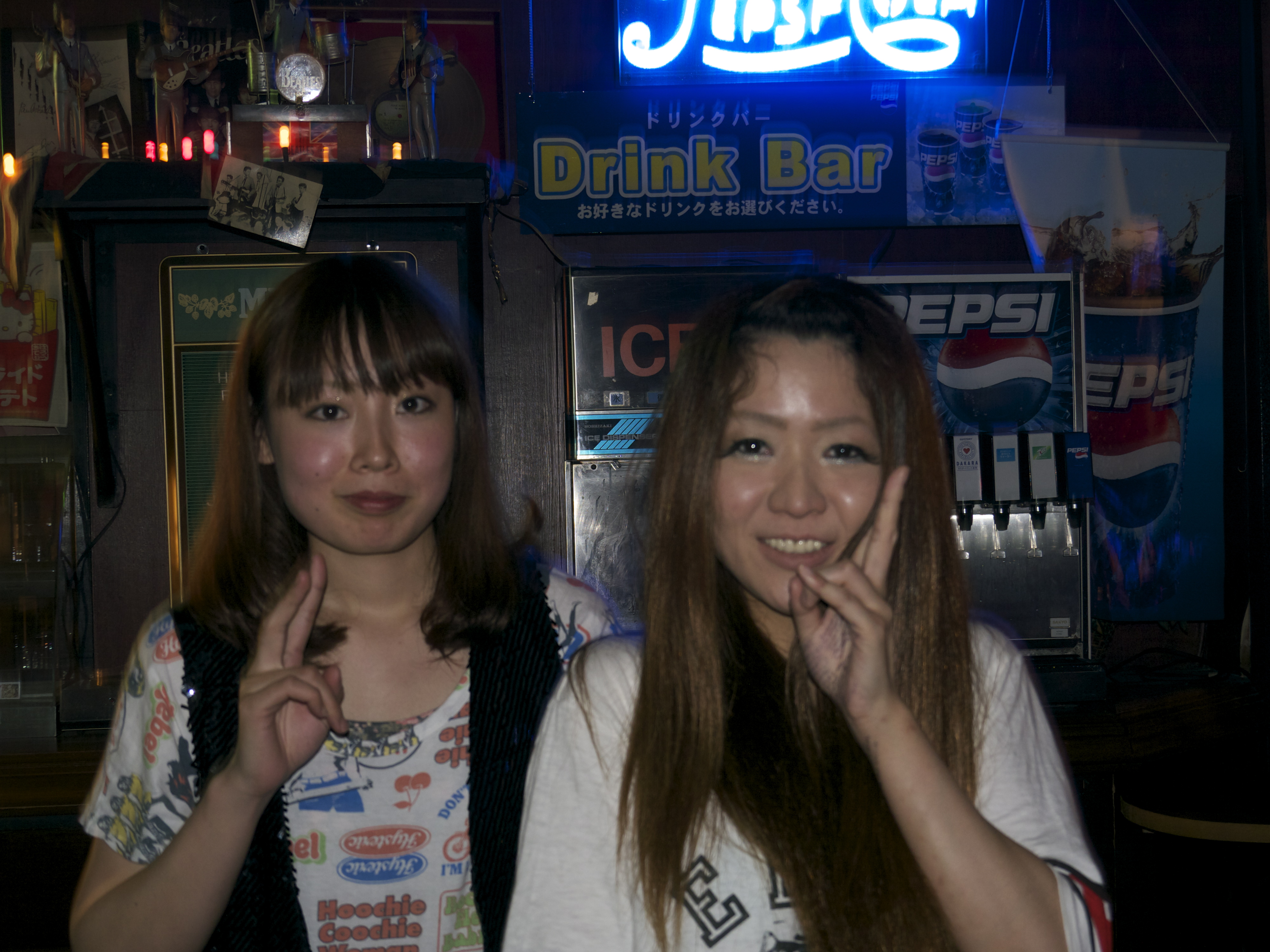 小川さんが私を見つけ、例の”ハイテンション”で歓迎された。心なしか緊張気味のようだ。バーカウンターで缶ビールを注文し、後方のテーブルに着いたが、まだ6時ちょっと過ぎで、開演まで20分以上のため、少し手持無沙汰だ。高橋さんと真中さんはまだ来ていない。ちょっと早すぎたかな。とりあえずビールをちびちびやりながらカメラをセット。今日はこういう屋内撮影のムービー用としてデジタル一眼レフと、静止画用としてコンパクトデジカメの2台を持ってきたんだが、うまく映るかちょっと不安だ。定刻で観客が7割くらいうまったかなという感じ。開始間際にお二人とも到着。ここには何度かきているようだ。場内の照明が下がり、トップバッターの小川さんの”C-an”からだ。