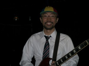 アブラジョーっていう3人組がテンポの良い曲を演っていました。そのリーダーは真中さんとは知り合いらしい口調でノリのいいジョークで笑わせてくれます。暗がりでようやく高橋先生を発見、、助かった。